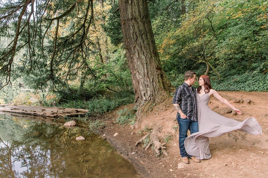 This beautiful fall engagement session at the state park in Battle Ground was sooo much fun! Brandon + Kyra met online a year ago, and within a week, went on a date. Kyra said that she used to get a huge knot in her stomach whenever she went on dates, but with Brandon…it was different. She instantly felt comfortable with him and didn’t want that first date to end! Within a few weeks, they were officially dating, and they both knew that this was it for them.